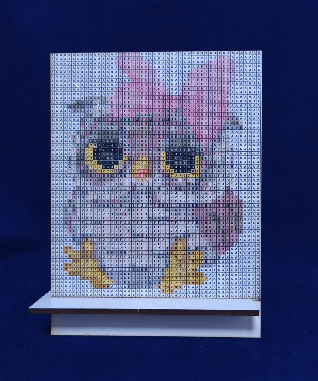 Алмазна мозаїка на ДВП з підставкою. В набір входить заготівля з нанесеним малюнком, схема ключ, ручка, клей, камені акрилові квадратні за номерами, тарілочка для каменів.