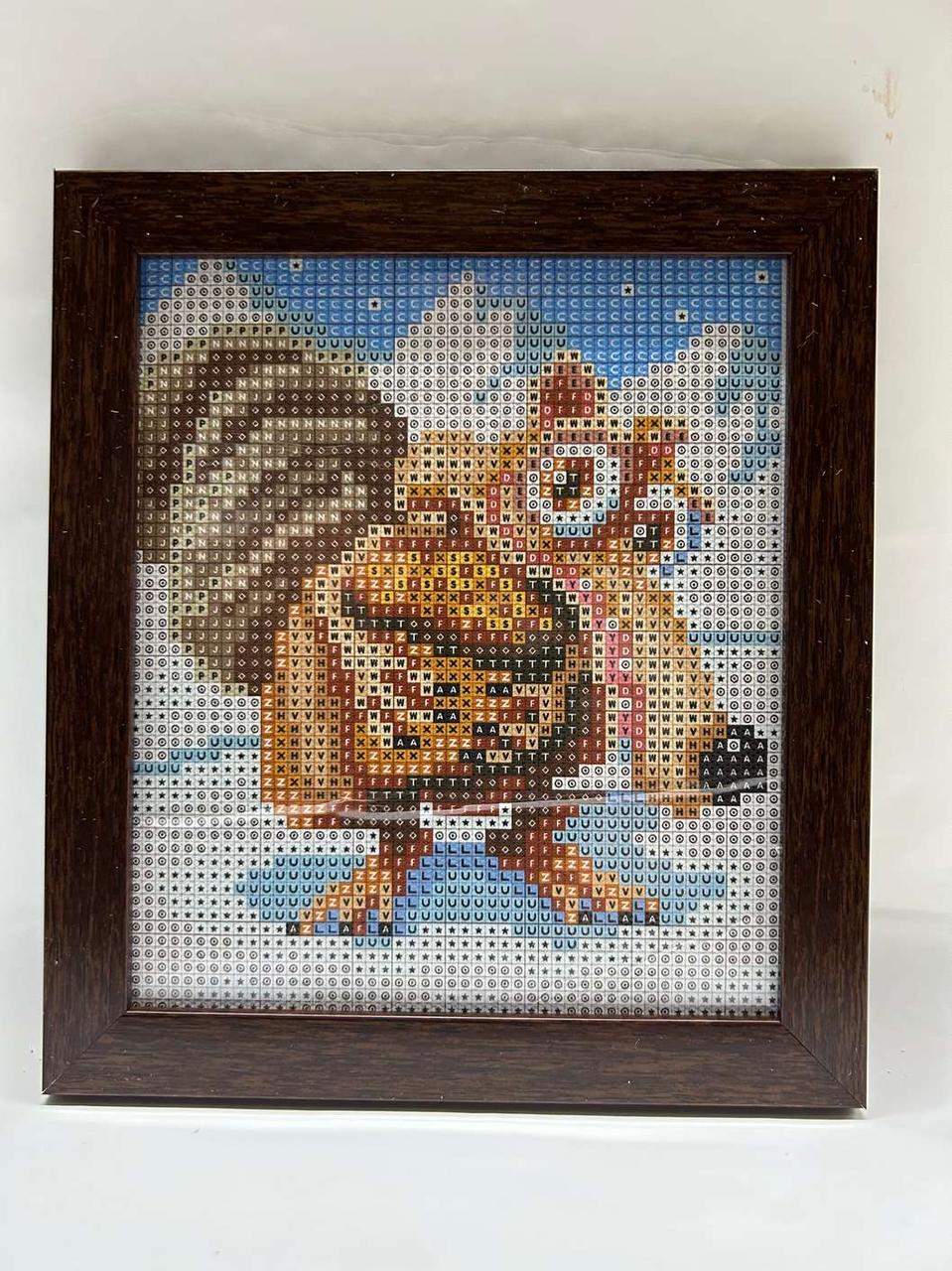 В набір для алмазного вишивки входить схема (самоклеюча кольорова схема на полотно), камені акрилові квадратні за номерами , пінцет, тарілочка для каменів, а також рамка.